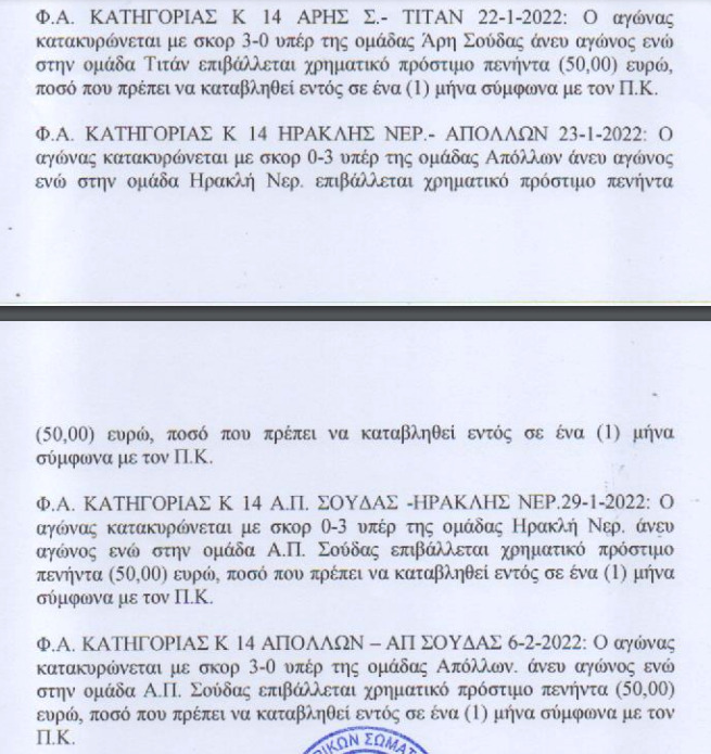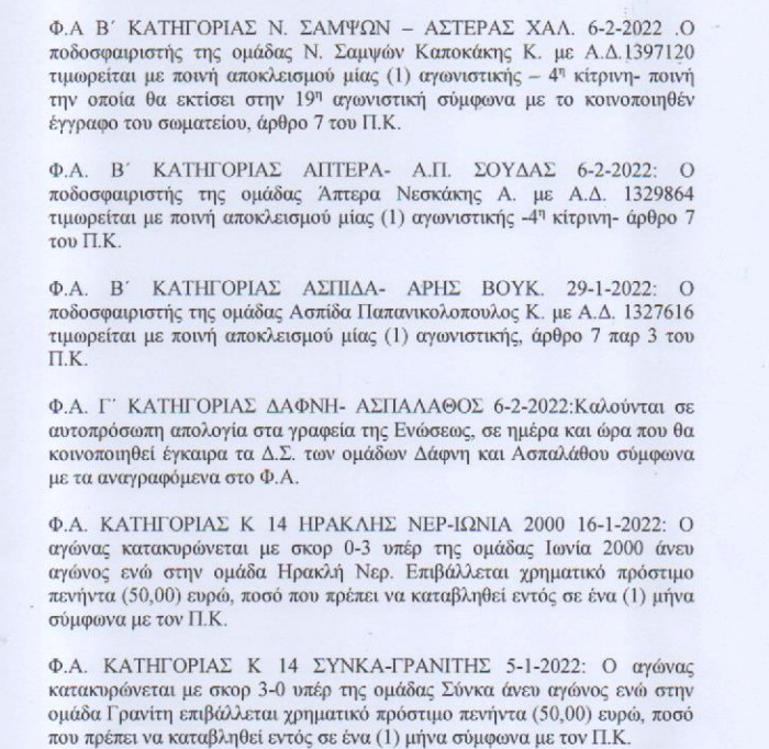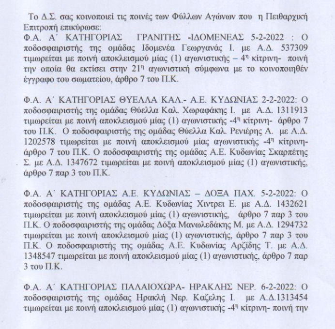 ΤοπικόΟι ποινές που ανακοίνωσε η ΕΠΣ Χανίων 11 Φεβ Για τα ματς του τοπικού Χανίων της προηγούμενης αγωνιστικής. Αναλυτικά: