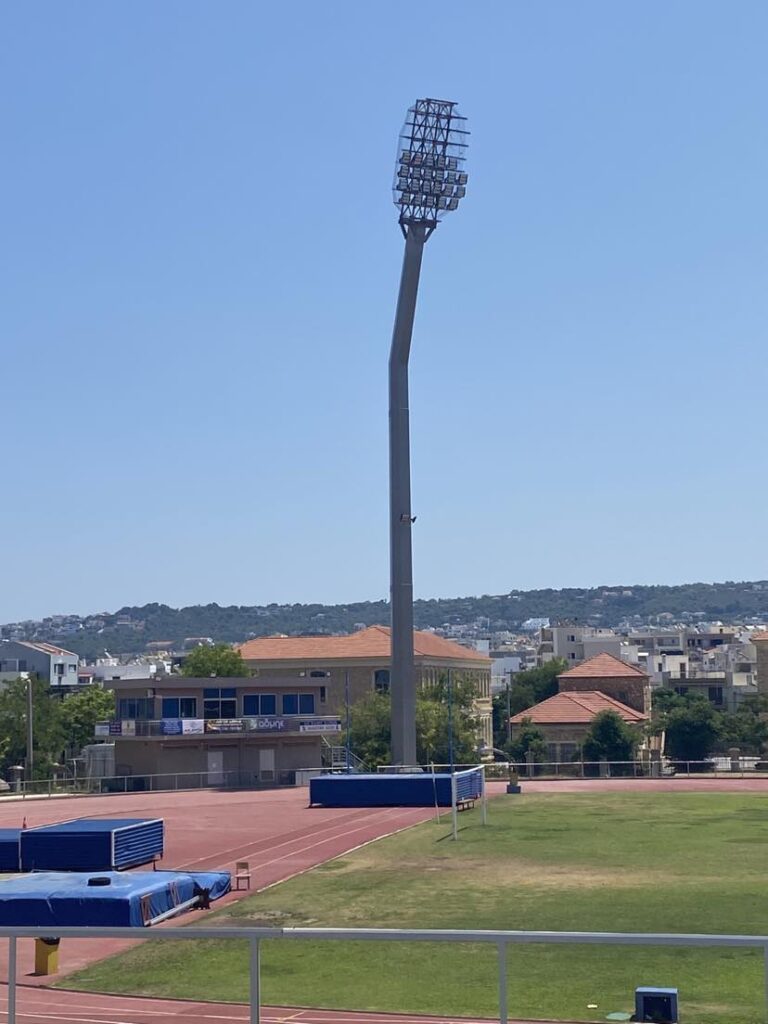 Ολοκληρώνονται σήμερα οι εργασίες βαψίματος και συντήρησης των πυλώνων στο Εθνικό Στάδιο Χανίων και από αύριο Πέμπτη 13 Ιουλίου η εγκατάσταση θα είναι πλήρως ανοικτή.
