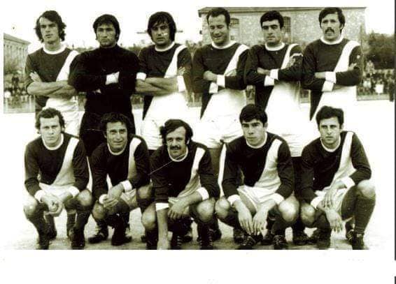 Παρατεταγμένη η ομάδα του ΑΟΧ της περιόδου 1974-1975, στο Εθνικό Στάδιο Χανίων, πριν από παιχνίδι για τον Νότιο Όμιλο της Β’ Εθνικής.