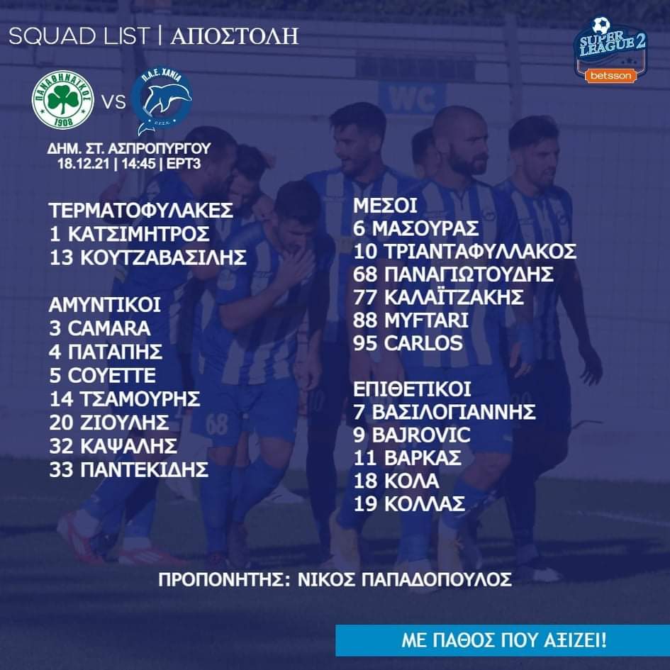 ΠΑΕ Χανιά: Αποστολή χωρίς Βασιλακάκη