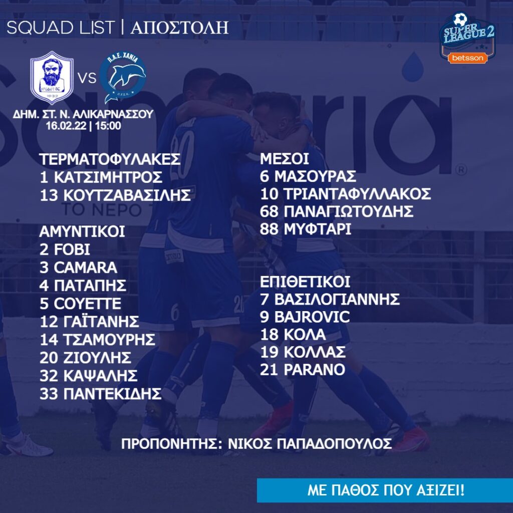 Μετά την τελευταία προπόνηση, το πρωί της Τρίτης (15/02) στη Μοναχή Ελιά, ανακοινώθηκε η αποστολή χωρίς τον τραυματία Κάρλος και τους Βάρκα, Νικόλη, Καλαϊτζάκη.