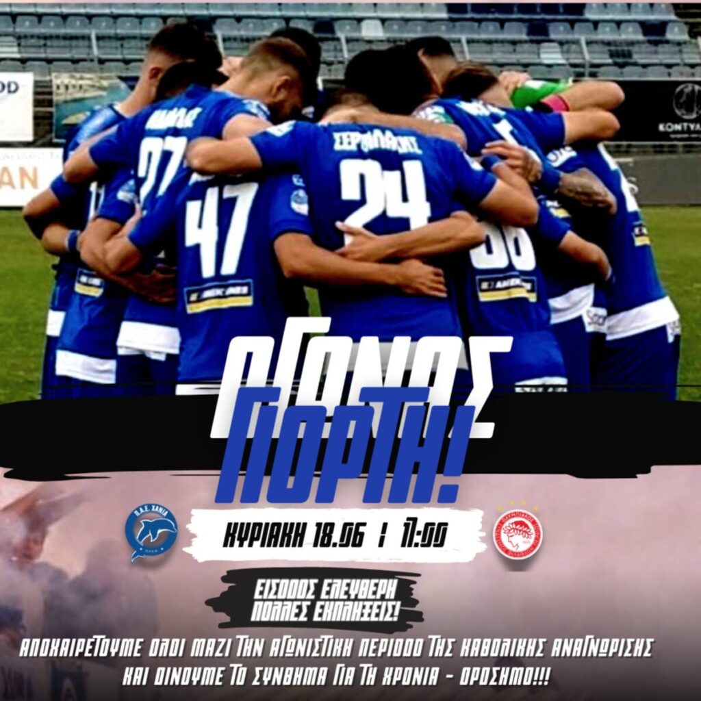 Με αυτό το σύνθημα η ΠΑΕ Χανιά καλεί τον κόσμο να δει το τελευταίο φετινό ματς της ομάδας, να τη χειροκροτήσει και να ανανεώσει μαζί του το ραντεβού για τη νέα χρονιά. Μάλιστα, η είσοδος για τον κόσμο θα είναι ελεύθερη.