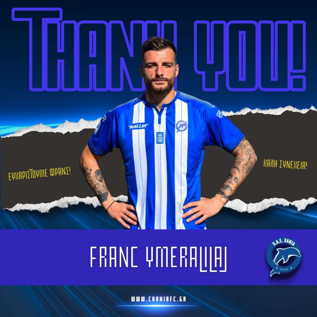 Η ΠΑΕ ΧΑΝΙΑ ανακοινώνει τη λήξη της συνεργασίας με τον ποδοσφαιριστή Φρανς Ιμεραλιλάι.