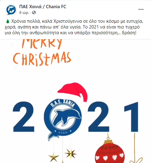 ΠΑΕ ΧΑΝΙΑΠΑΕ Χανιά: Οι ευχές για τα Χριστούγεννα 25 Δεκ Χριστουγεννιάτικες ευχές από την ΠΑΕ Χανιά. Με ανάρτηση στο Faceboook η ΠΑΕ Χανιά εύχεται με αφορμή την ημέρα των Χριστουγέννων: