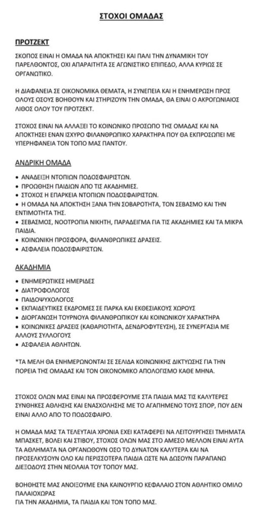 “Η στήριξη όλων σας, είτε μικρή είτε μεγάλη, θα είναι σημαντική στην νέα αρχή που κάνουμε για τον τόπο και τα παιδιά μας”, αναφέρει η Παλαιόχωρα.