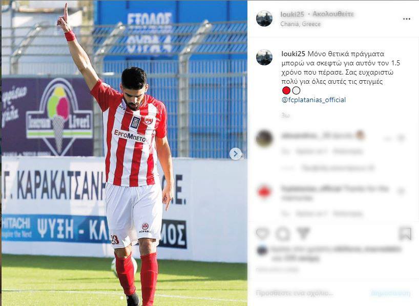Ένας σημαντικός παίκτης του Πλατανιά ο Γιάννης Λουκίνας αποχαιρέτησε την ομάδα των Χανίων με ποστάρισμά του στο Instagram: