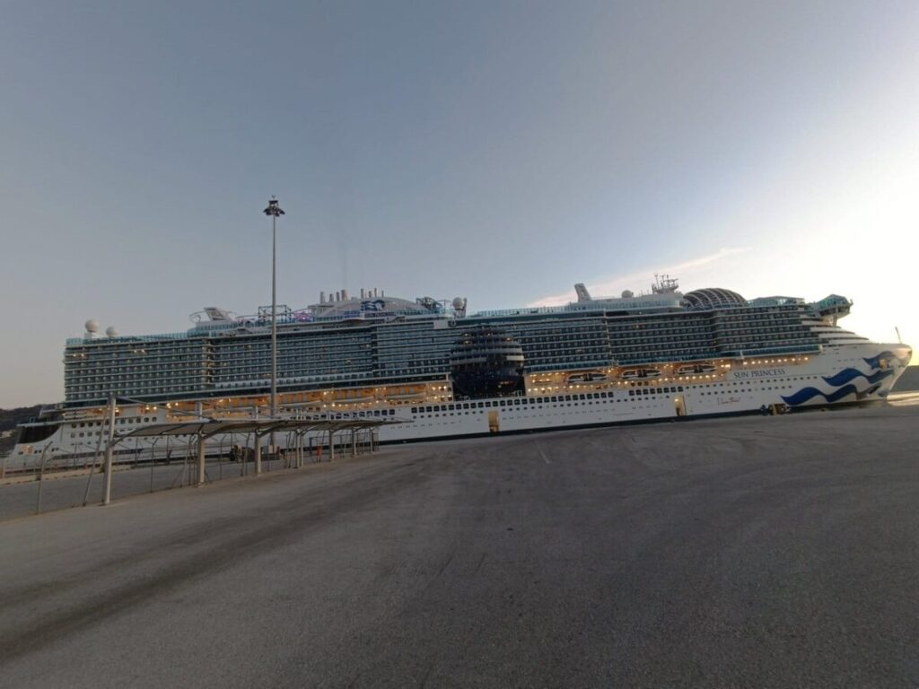 Πρόκειται για το γιγάντιο και υπερπολυτελές νεότευκτο κρουαζιερόπλοιο Sun Princess το οποίο μεταφέρει 4.072 επιβάτες.