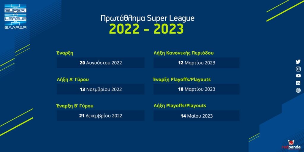 Η κλήρωση των αγώνων της κανονικής περιόδου του Πρωταθλήματος Super League 2022-23, θα πραγματοποιηθεί τη Δευτέρα 25 Ιουλίου 2022.