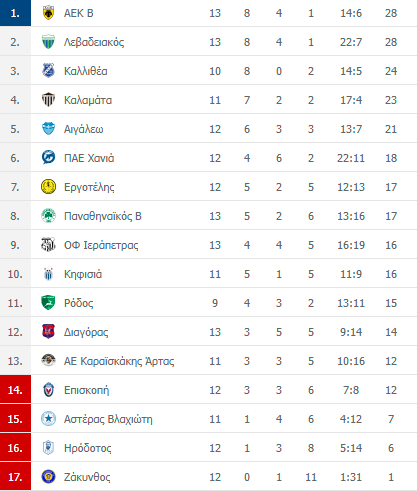 SL2: Η βαθμολογία στον Νότιο Όμιλο
