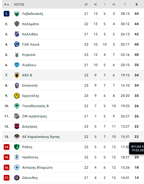 Μετά τα παιχνίδια του Σαββατοκύριακου δείτε πώς διαμορφώνεται η βαθμολογία στον Νότιο Όμιλο της Sl2.