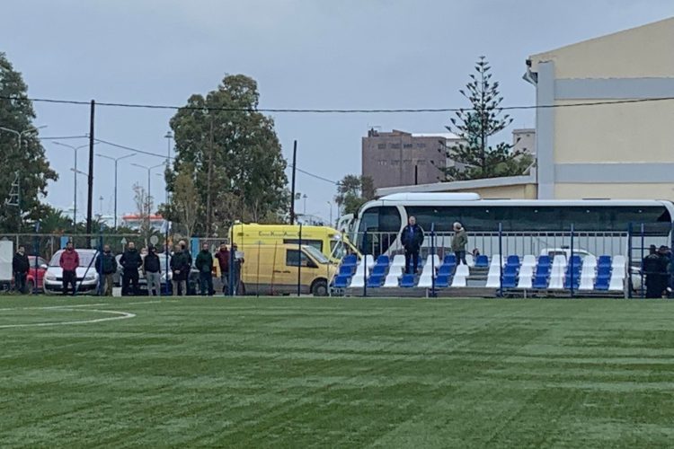 Με ασθενοφόρο αποχώρησε από τον αγωνιστικό χώρο του γηπέδου της Σούδας ο ποδοσφαιριστής του Αλμυρού Μανώλης Κανδυλάκης.