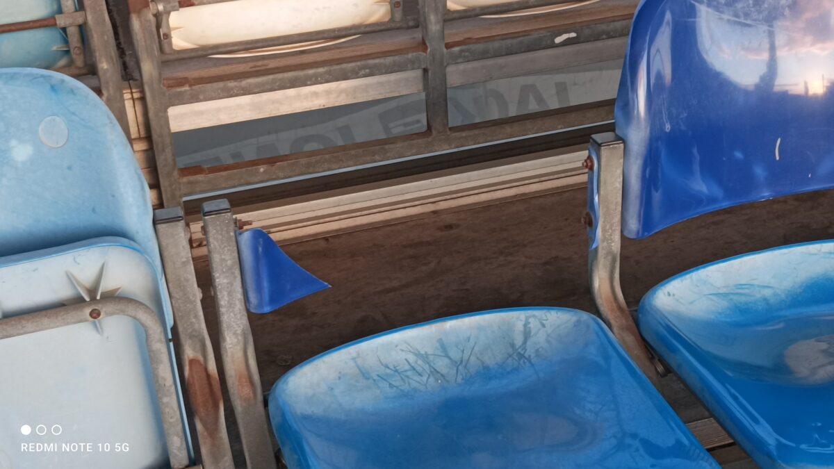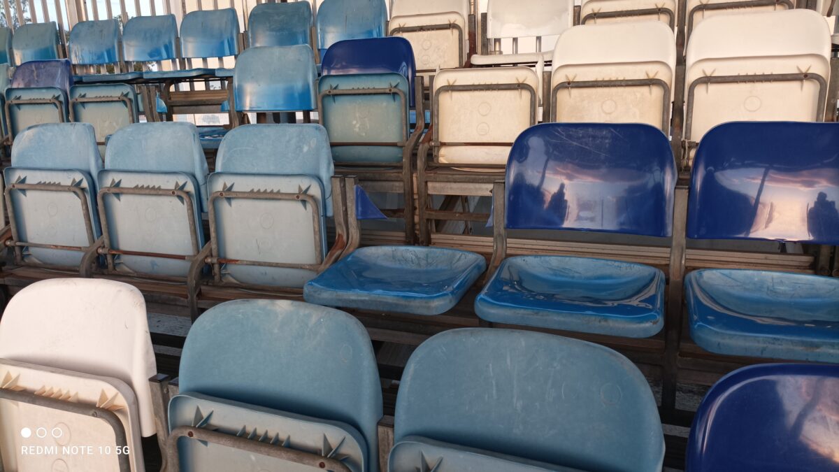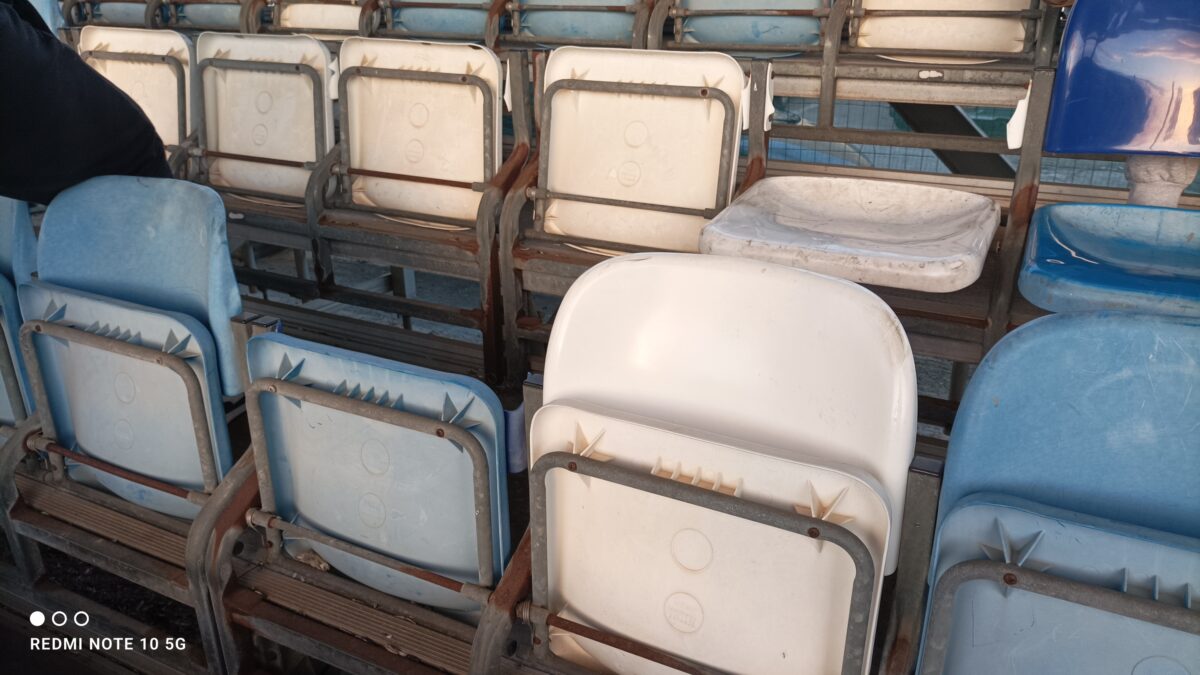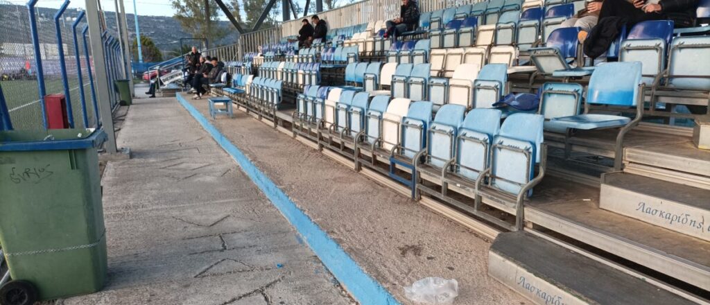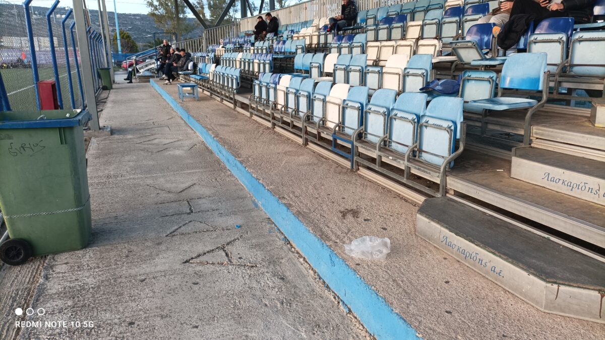 Η κερκίδα του γηπέδου θυμίζει “βομβαρδισμένο” τοπίο…