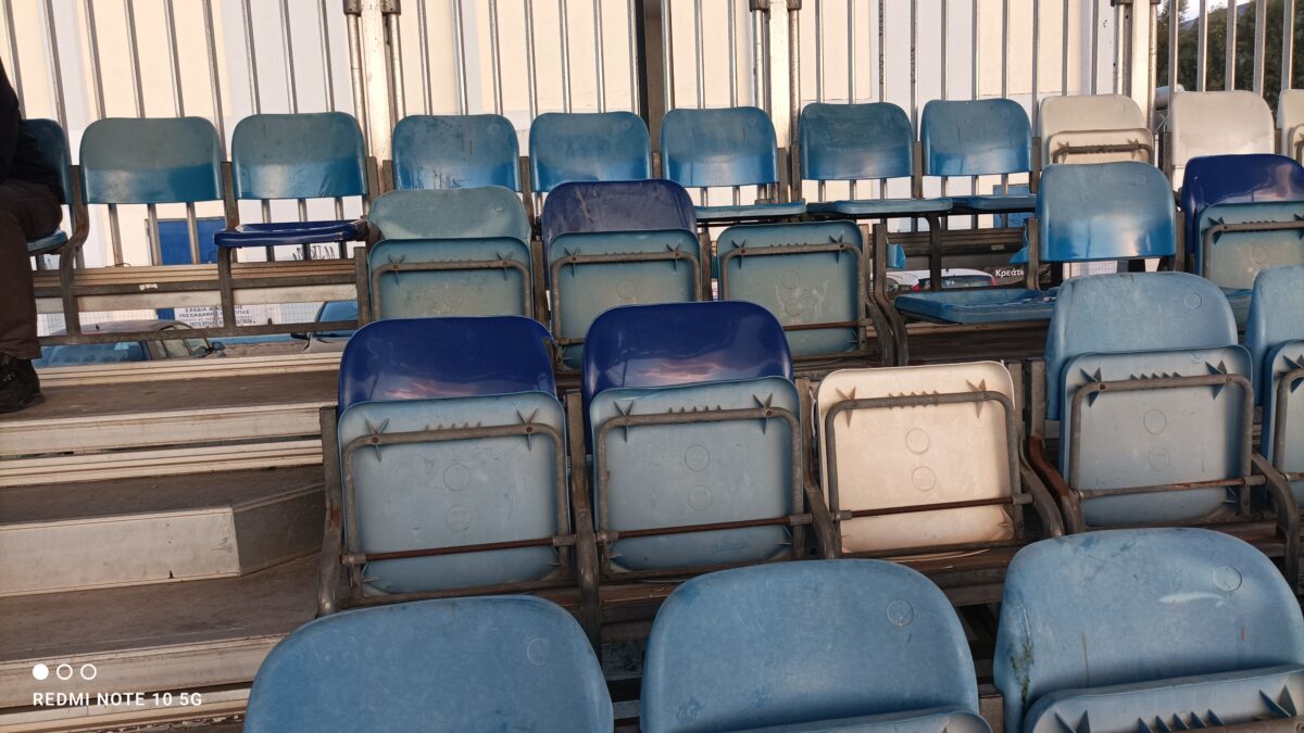 Μπόλικα τα σπασμένα καθίσματα στο γήπεδο της Σούδας.