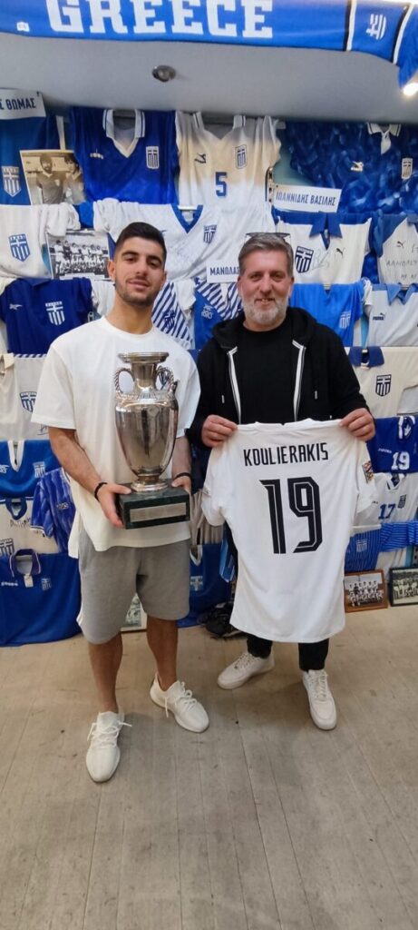 Ο Κουλιεράκης που ήταν μαζί με τον πατέρα του Μιχάλη, περιηγήθηκε στο μουσείο και είδε τα εκθέματα όπου πλέον υπάρχει και η δική του φανέλα, όντας φυσικά και ο ίδιος διεθνής.