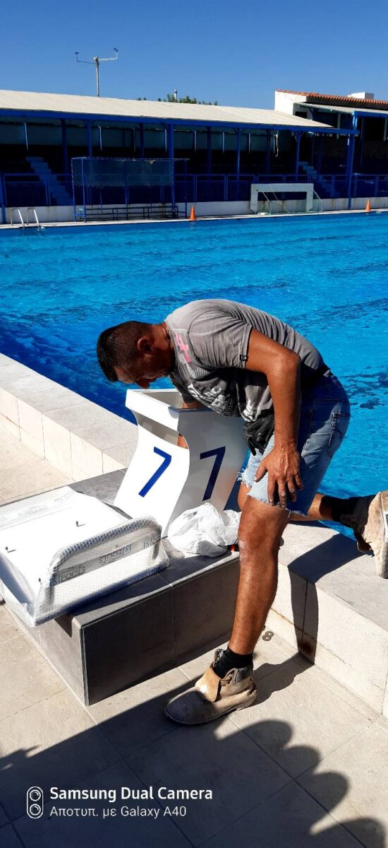 Ολοκληρώθηκε η τοποθέτηση των βατήρων στην μια μεριά της πισίνας. Και για αυτούς που “κρίνουν” πριν καν δουν ολοκληρωμένο το έργο, οι νέοι υπερσύγχρονοι αγωνιστικού τύπου βατήρες, έχουν υποπόδια.