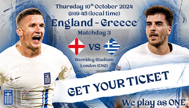 Στον “ναό του ευρωπαϊκού ποδοσφαίρου”, το ιστορικό Γουέμπλεϊ, θα αγωνιστεί η Εθνική Ομάδα στις 10 Οκτωβρίου με την Αγγλία για την 3η αγωνιστική του ομίλου της στο Nations League. Κλείστε το εισιτήριό σας για να ζήσετε μία μοναδική ποδοσφαιρική βραδιά σε ένα από τα πιο ιστορικά γήπεδα του πλανήτη!