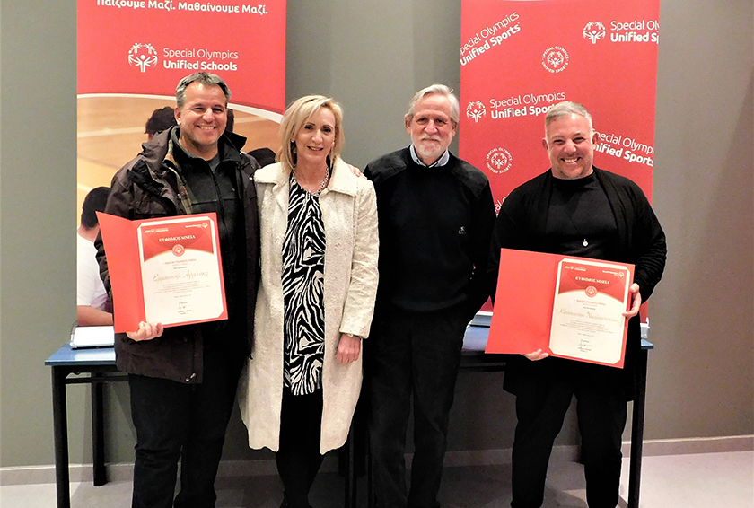 Στην βράβευση των προπονητών του Τμήματος Ειδικής Αθλησης (Τ.Ε.Α.) του Ναυτικού Ομίλου Χανίων, Κώστα Νικολαντωνάκη και Μανώλη Αγγελάκη, προχώρησαν τα Special Olympics Hellas.