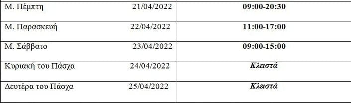 Σήμερα Μεγάλη Πέμπτη το ωράριο είναι συνεχές ενώ Μ. Παρασκευή και Μ. Σάββατο διαφοροποιείται.Remaining Time-0:00FullscreenMute
