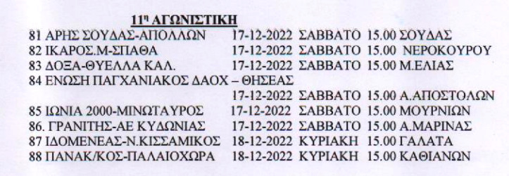 ΤοπικόΤο πρόγραμμα στο πρωτάθλημα Κ16 13 Δεκ Ανακοινώθηκε το πρόγραμμα στα Κ16. Έξι ματς το Σάββατο και δύο την Κυριακή.