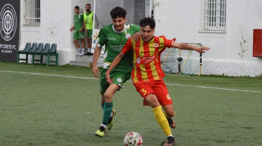 Οι γηπεδούχοι προηγήθηκαν με τον Χαραλαμπάκη στο 7′, αλλά στο 22′ ο Λίτσι ισοφάρισε και ενώ δύο λεπτά νωρίτερα οι Νέοι έμειναν με 10 λόγω αποβολής του Δαμανάκη.