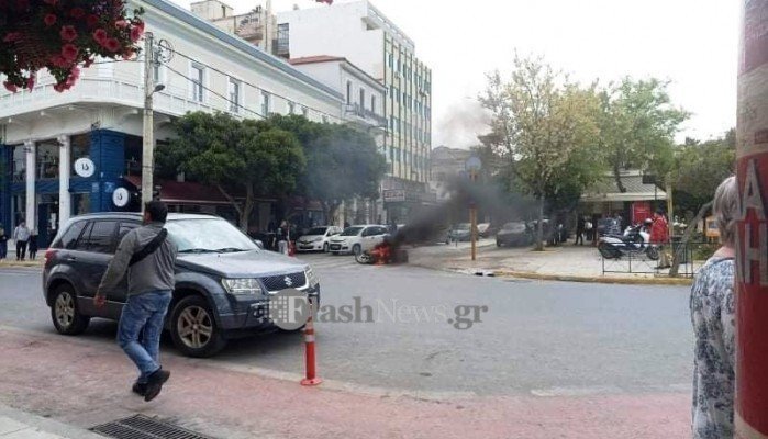 Μια μοτοσυκλέτα τυλίχτηκε στις φλόγες το μεσημέρι της Δευτέρας 2 Μαϊου στην πλατεία 1866 στα Χανιά μπροστά στα έκπληκτα μάτια τ5ων περαστικών.