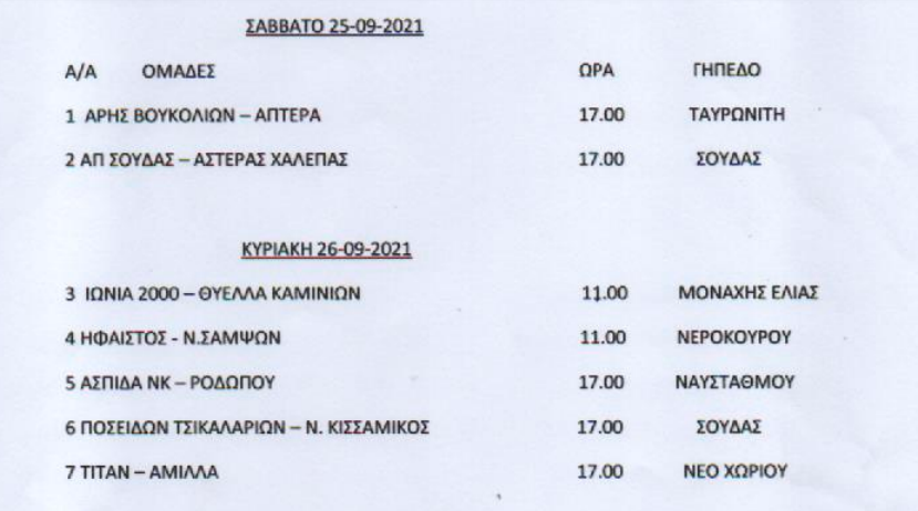 Τοπικό, IN THE SPOTLIGHTΒ’ ΕΠΣΧ: Το πρόγραμμα της πρεμιέρας! 22 Σεπ Ξεκινά το προσεχές Σαββατοκύριακο η Β’ ΕΠΣ Χανίων. Δύο παιχνίδια το Σάββατο και πέντε την Κυριακή. Αναλυτικά:
