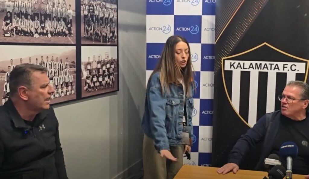 Πρωταγωνιστές του επεισοδίου ο προπονητής της Καλαμάτας Σούλης Παπαδόπουλος με τον δημοσιογράφο της Καλαμάτας Σωτήρη Γεωργούντζο.
