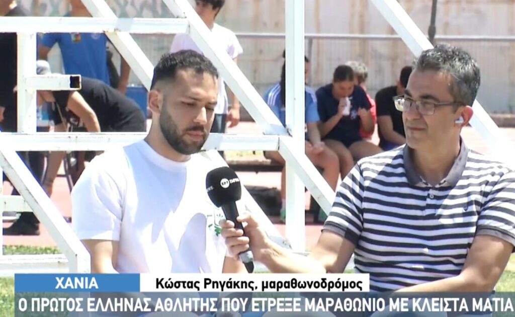 Ο 28χρονος Χανιώτης Κώστας Ρηγάκης κατεγράφη ως ο πρώτος Έλληνας (και ανάμεσα σε 15 σε όλον τον κόσμο!) που ολοκλήρωσε μαραθώνιο με δεμένα μάτια! Όπως εξηγεί στην εκπομπή “Περίμετρος” της ΕΡΤ3 που παρουσιάζει η Κατερίνα Ρενιέρη και σε δηλώσεις του στον δημοσιογράφου της ΕΡΤ Βασίλη Φουντουλάκη, στόχος του ήταν να στείλει ένα μήνυμα προς τους γύρω του, επισημαίνοντας ότι «η ζωή δεν είναι δίκαιη και όσα δύσκολα θεωρεί ότι περνά ο καθένας στην καθημερινότητα του δεν είναι τίποτε μπροστά στα σοβαρά προβλήματα». Για αυτό τρέχει «για κάθε παιδί που ακόμη παλεύει».